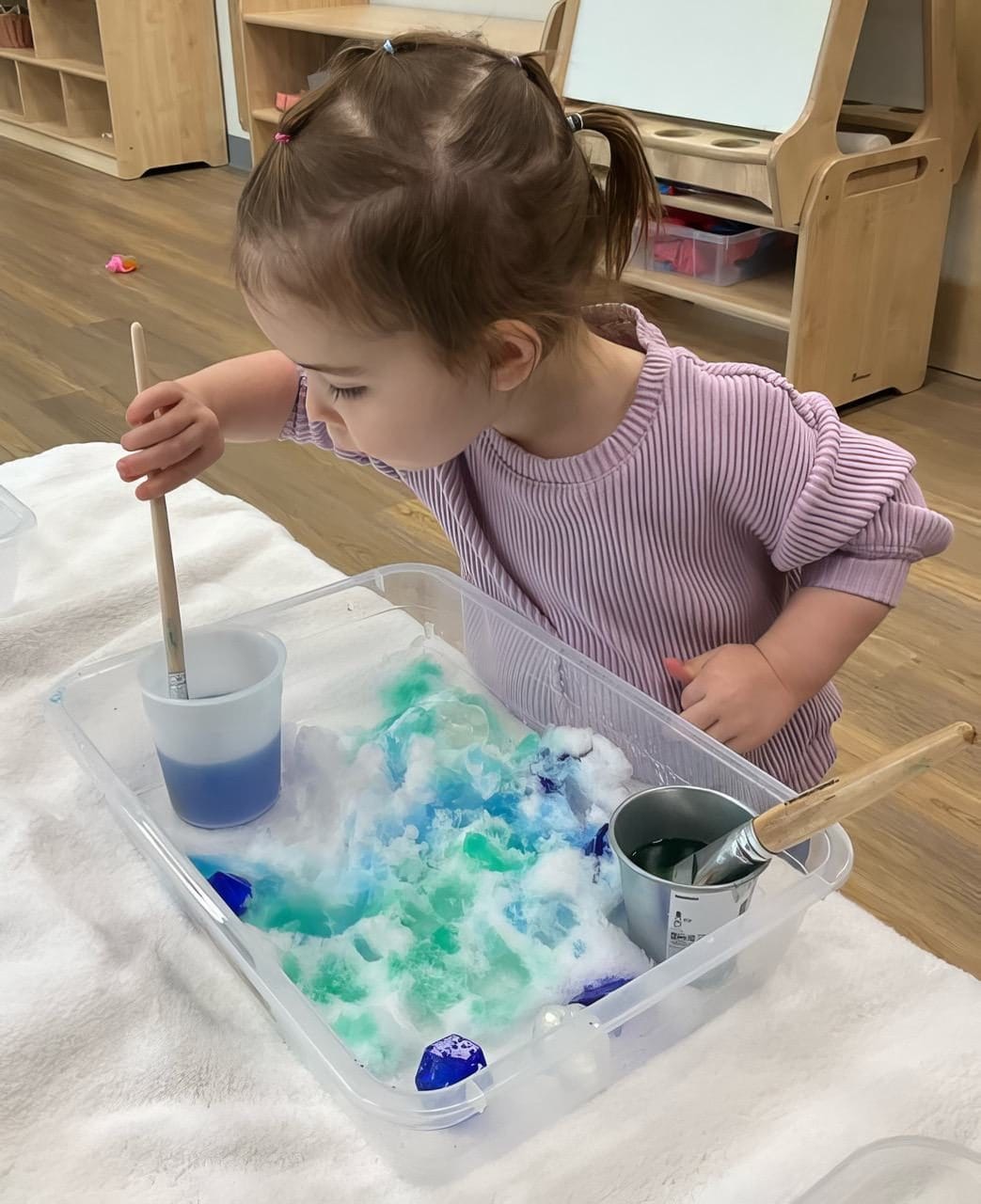 Each child develops at his or her own pace. We will work on toilet training with you and your child in a no-pressure, respectful way. Please let us know what method you follow so that we may provide as much consistency for your child as possible. In case of accidents, parents are required to provide diapers and wipes for their child through the toilet training process. We follow all public health guidelines for diaper changing routines. The diaper change area is disinfected after every diaper change and the teacher will wash her hands after every change.
